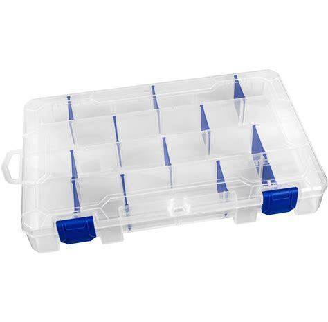 Flambeau Compartment Box: 9 3/4 in X 16 1/2 in X 3 1/4 In, Clear, 15 Compartments, 9 Adj Dividers Model: T7004