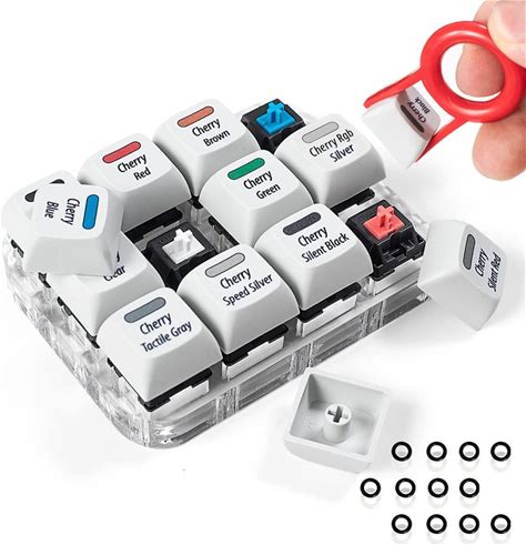 Griarrac Cherry MX Switch Tester Switch Sampler Mechanical Keyboards 12-Key Switch Testing Tool, With Keycap Puller And Switch O Rings (Includes