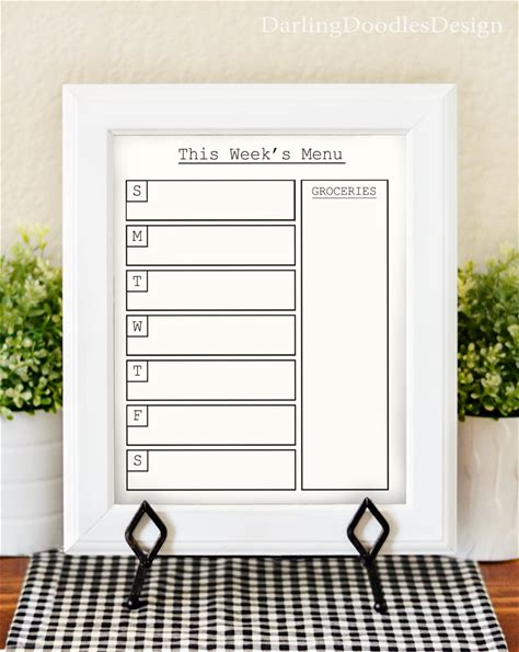 Weekly Meal Planner - Printable Menu - Weekly Menu Planner - Dry Erase Menu Board - Kitchen Planner - Kitchen Printable -Printable Menu Plan