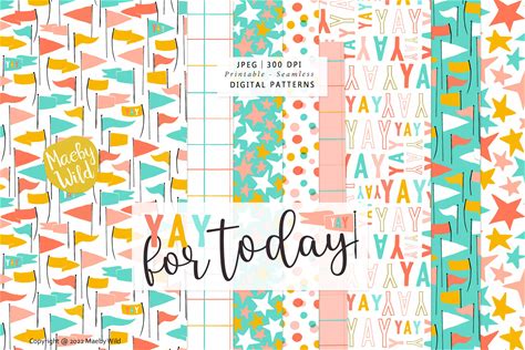 Celebration Digital Seamless Pattern Paper - Flag And Banner Pattern Scrap Paper - Printable Birthday Yay Typography Paper Set - Commercial